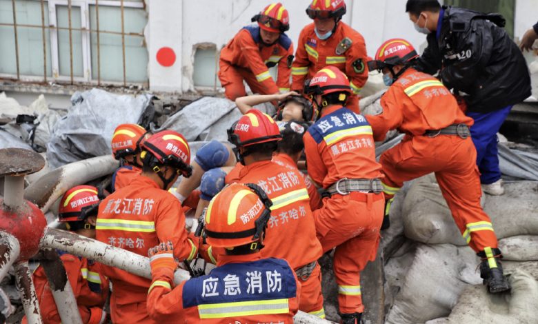 Read More »Rescuers pull out a trapped person after the roof of a gymnasium at a school in Qiqihar, Heilongjiang province, collapsed…