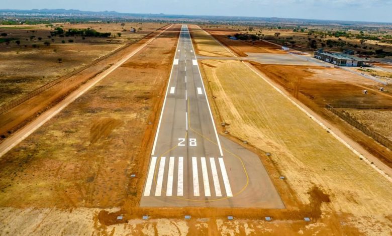 He said the works include construction of the access road, internal circulation roads, parking areas, passenger terminal with control tower, and the 2.2-kilometre runway.