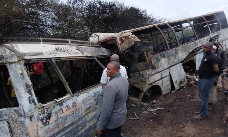 Initial reports indicate that the Channel One bus encountered a tyre burst, lost control, veered into the opposite lane and collided head-on with the Mitsubishi Rosa. Both vehicles immediately caught fire, resulting in a devastating blaze.