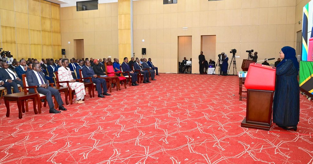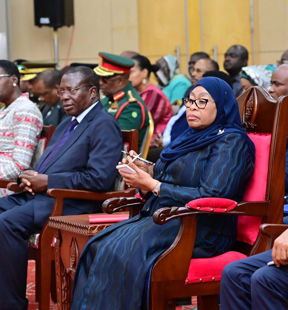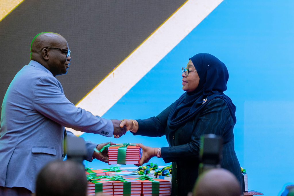 President Samia Suluhu Hassan, receiving the report of the Controller and Auditor General (CAG) for the year 2023/24 from Mr. Charles Kichere (CAG) during a brief ceremony attended by various leaders held at the State House in Dar es Salaam on March 27, 2025.