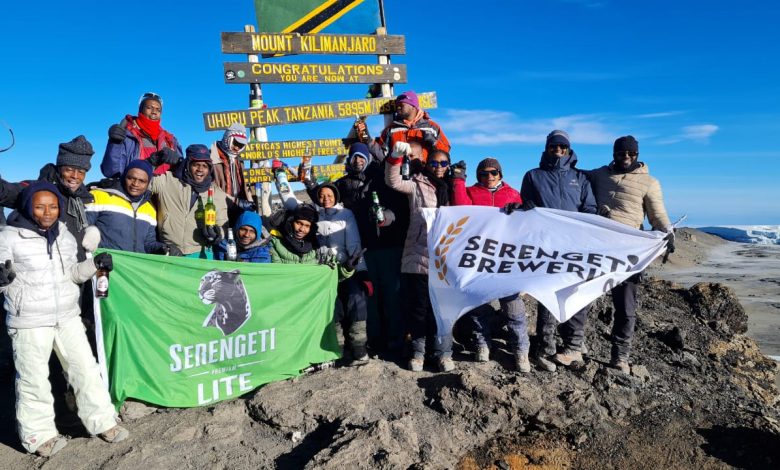 SERENGETI Breweries Limited staff in a souvenir group photo at Uhuru Peak, the summit of Mount Kilimanjaro, the highest free standing peak in Africa as part of their initiative to promote domestic tourism, over the weekend.