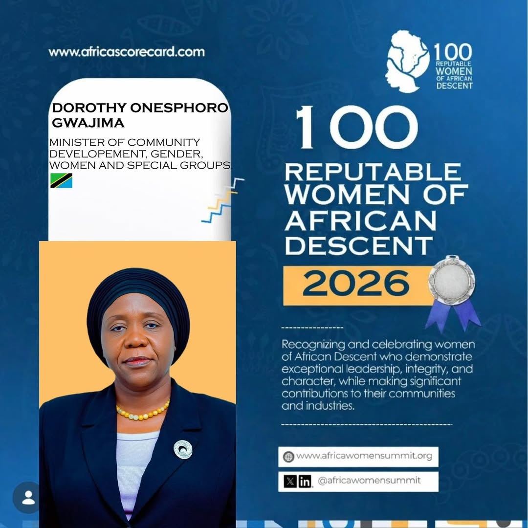 DODOMA: TANZANIA’S  Minister for Community Development, Gender, Women, and Special Groups, Dr Dorothy Gwajima, has been recognized as one of the 100 Most Influential African Women for 2026.
