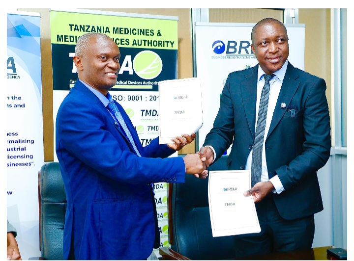 The agreement was signed today in Dar es Salaam by the Director General of TMDA, Dr. Adam Fimbo, and the Chief Executive Officer of BRELA, Mr. Godfrey Nyaisa.
